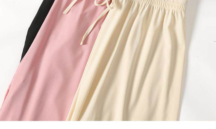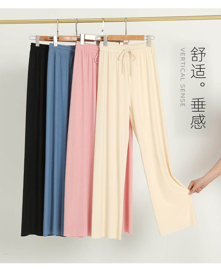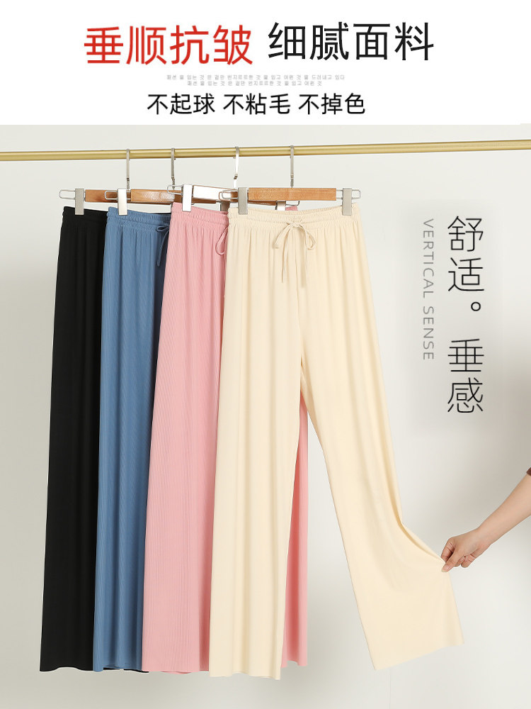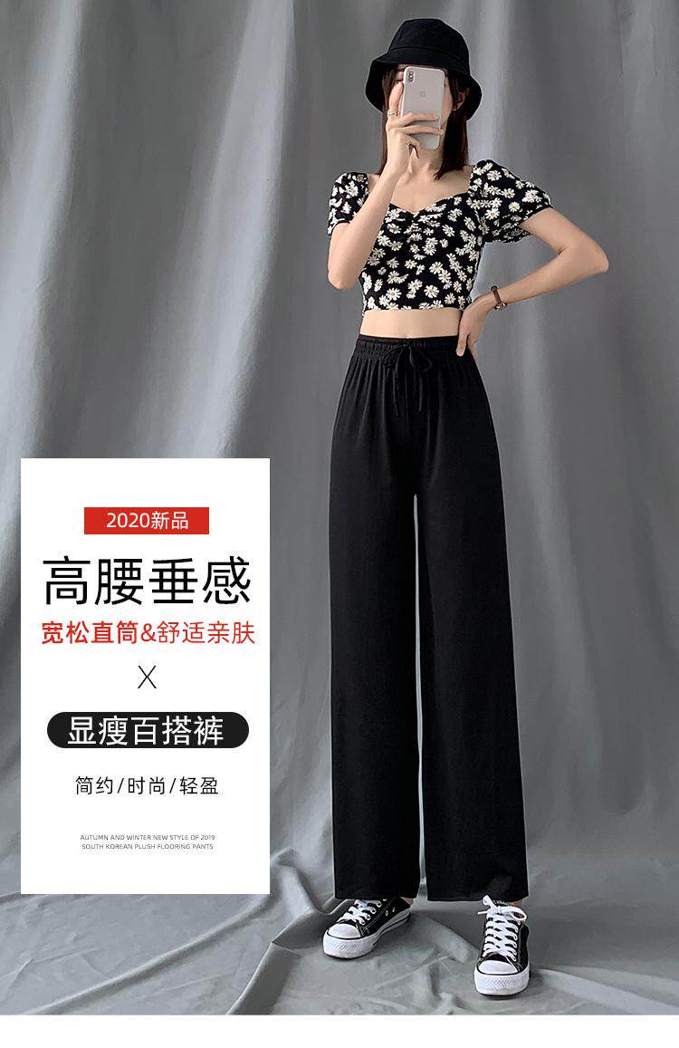 Шелковые черные летние тонкие штаны для отдыха, высокая талия, свободный прямой крой, осенние
