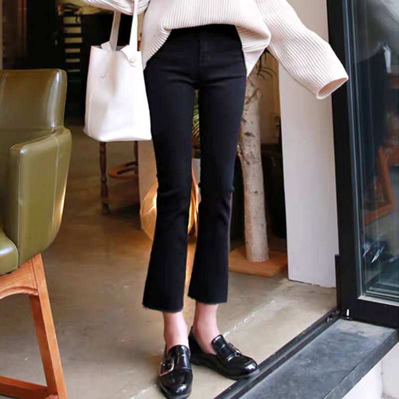 Черный мегафон для отдыха, джинсы, эластичные штаны, Южная Корея, по фигуре, коллекция 2021, новая коллекция