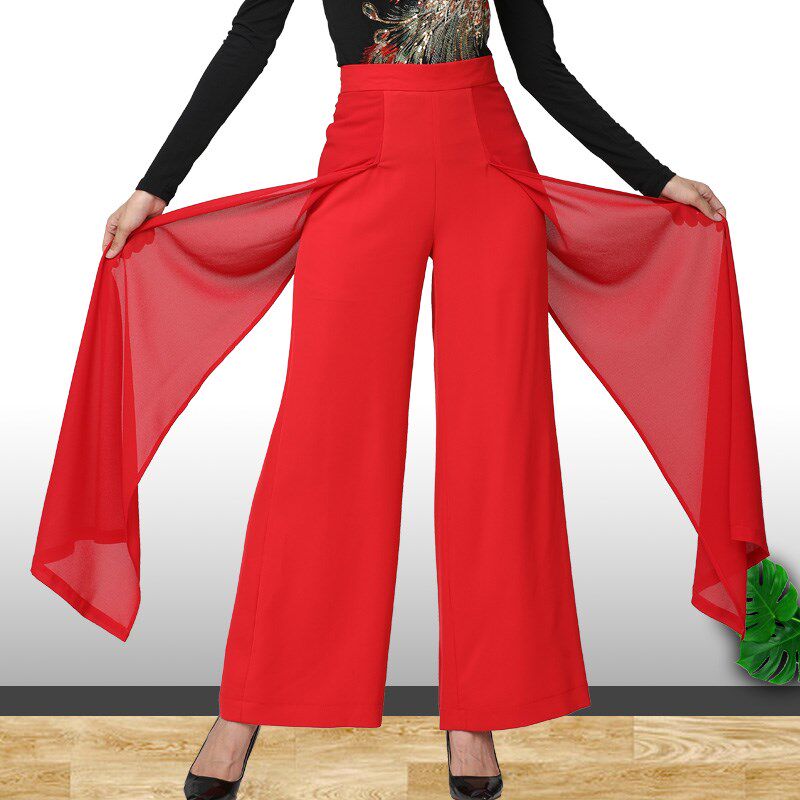 Plaza Dance High -Женщины -брюки Дружба и штаны и танцующие национальные штаны -брюки с широкими темпами, по обеим сторонам ленточных танцевальных танцев.