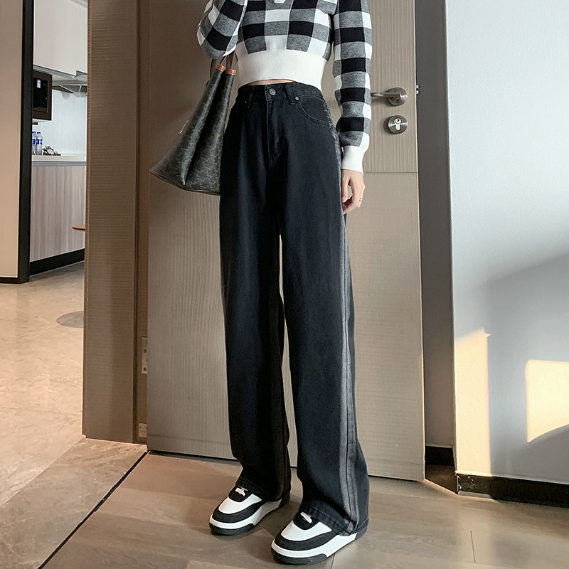 Джинсы, демисезонные темные цветные штаны, градиент, высокая талия, свободный прямой крой, стройный силуэт
