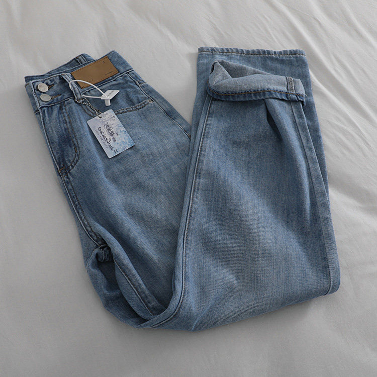 Tide, ретро синие летние тонкие джинсы, штаны, в корейском стиле, высокая талия, свободный прямой крой