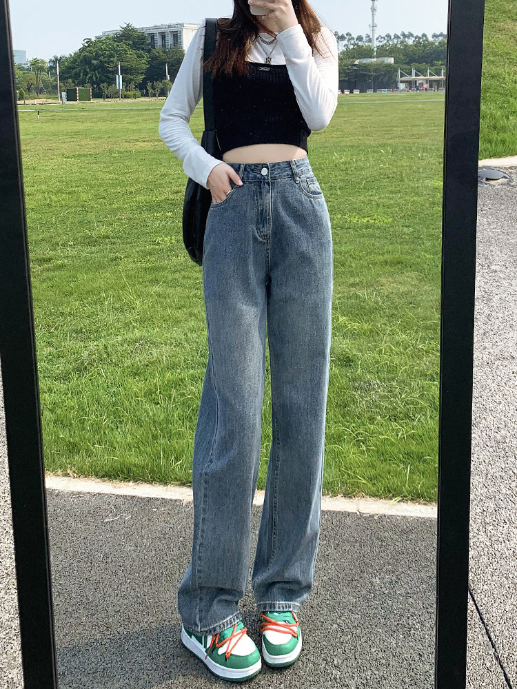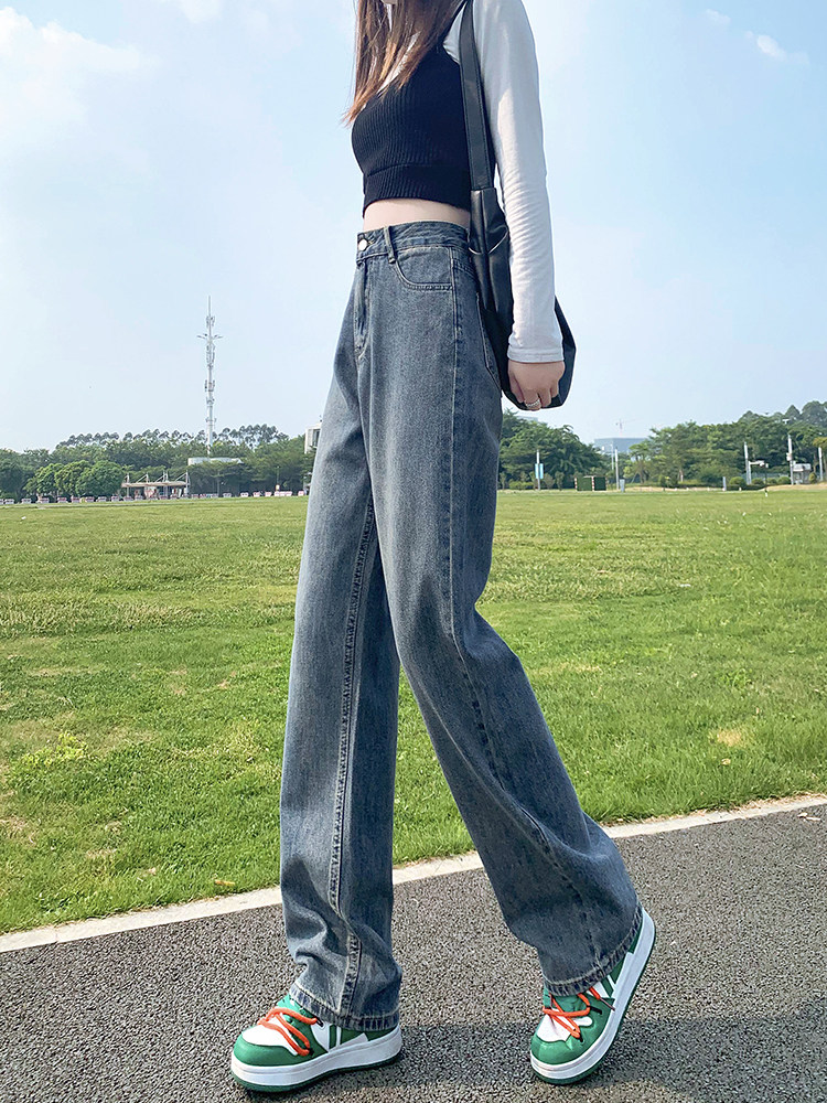 Tide, ретро демисезонные джинсы, штаны, приталенные флисовые леггинсы, коллекция 2022, высокая талия, свободный прямой крой
