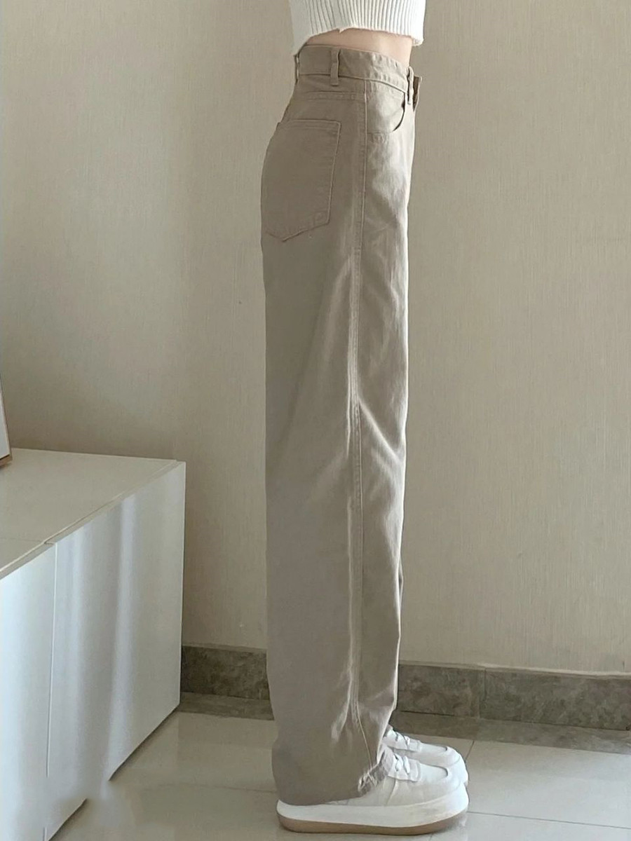 Хаки демисезонные прямые свободные джинсы, штаны, дизайнерские леггинсы, высокая талия, свободный крой, тренд сезона
