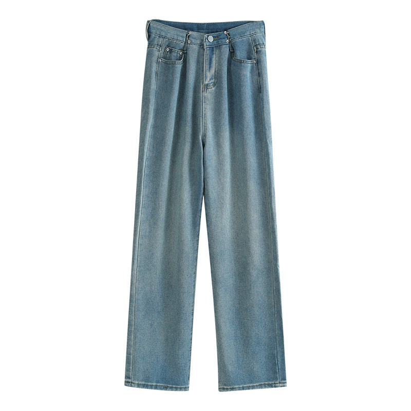 Джинсы, весенние штаны, высокая талия, для формы тела «груша», свободный прямой крой