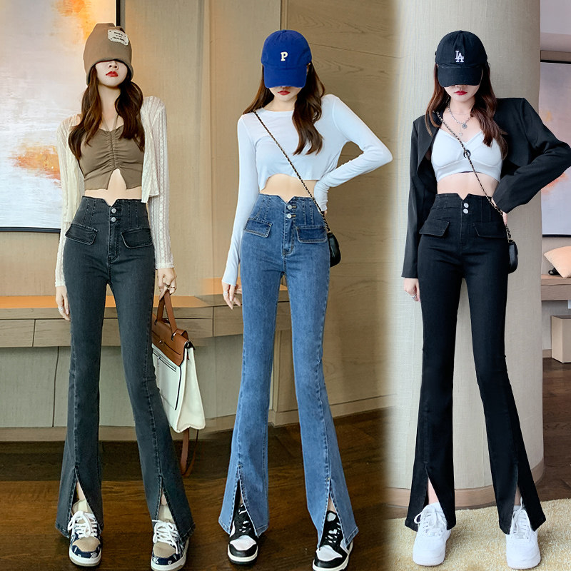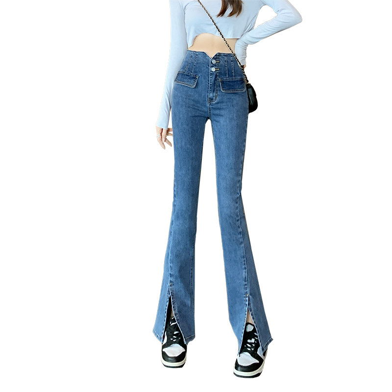 Ретро джинсовые осенние джинсы, демисезонные штаны, штаны-клёш, высокая талия, по фигуре