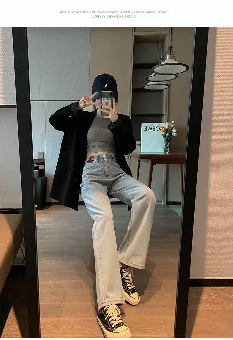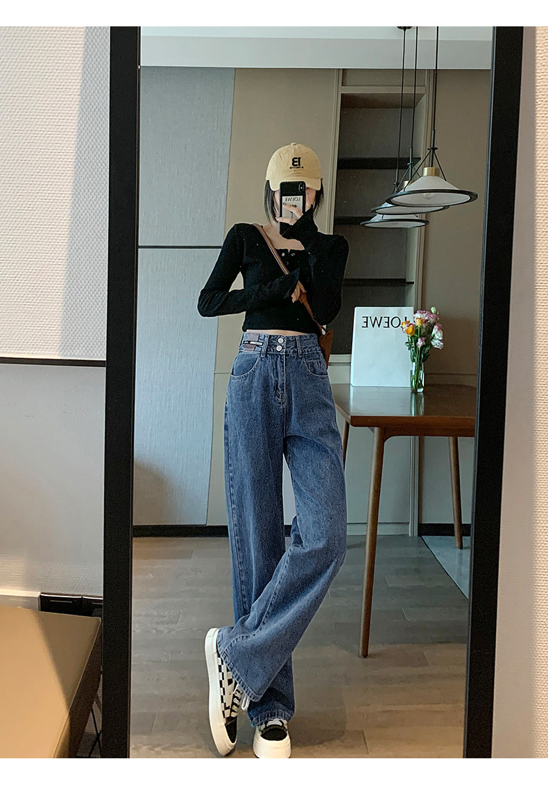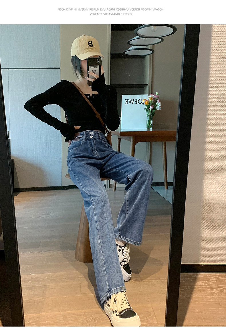 Осенние джинсы, демисезонные штаны, в американском стиле, высокая талия, популярно в интернете, свободный прямой крой