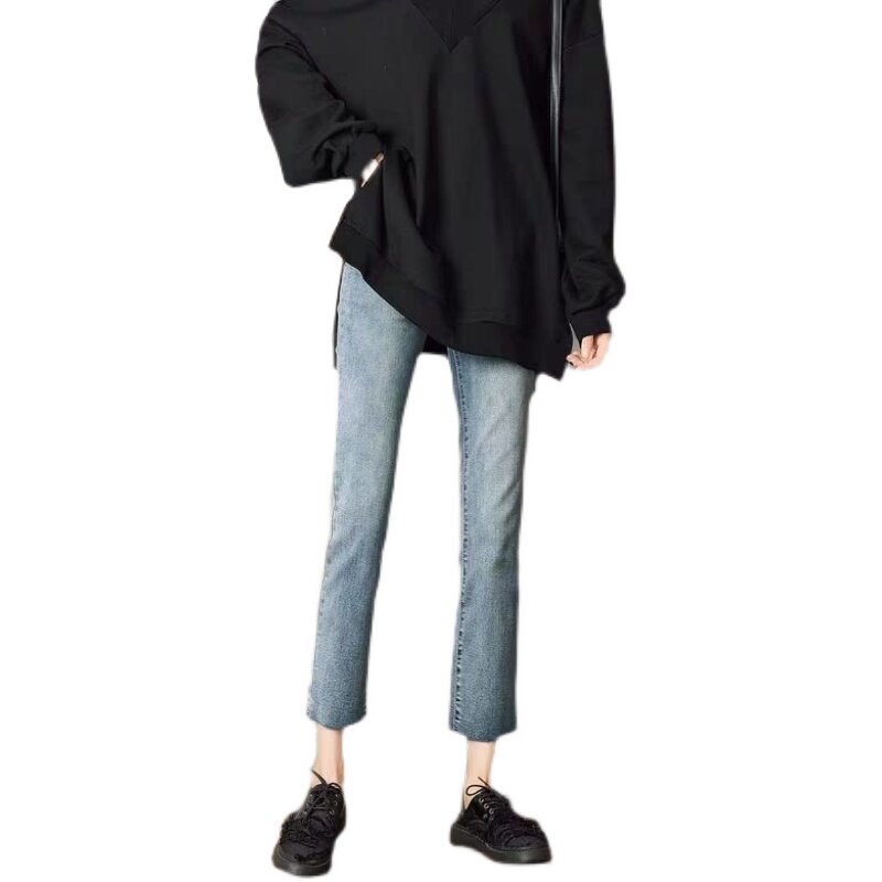 Прямые свободные джинсы, весенние осенние штаны, высокая талия, французский стиль, 2024 года, большой размер, подходит для подростков