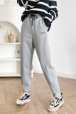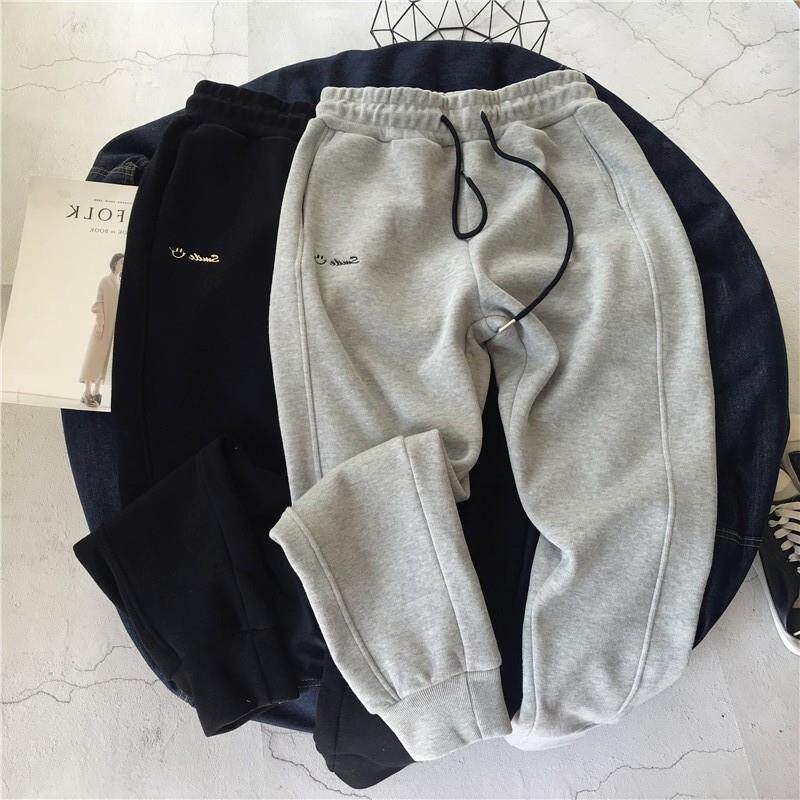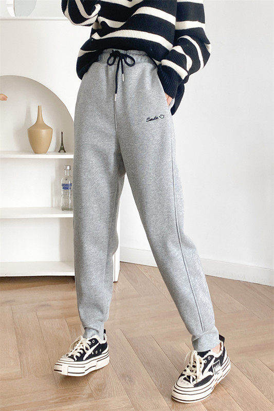 Флисовые приталенные штаны, с вышивкой, в корейском стиле, высокая талия, эластичная талия