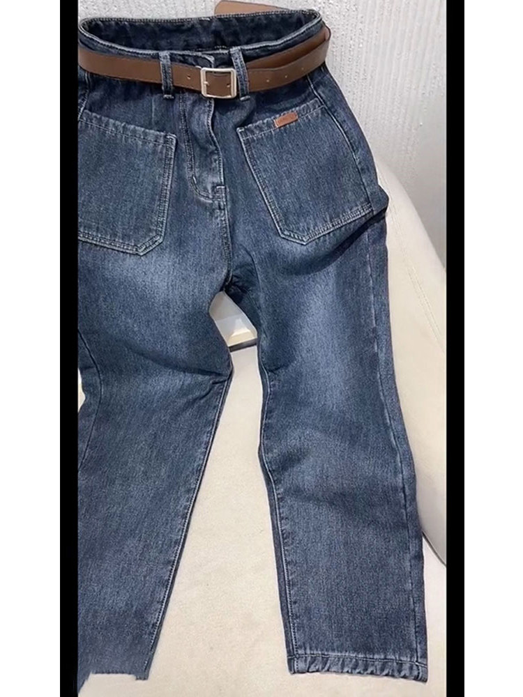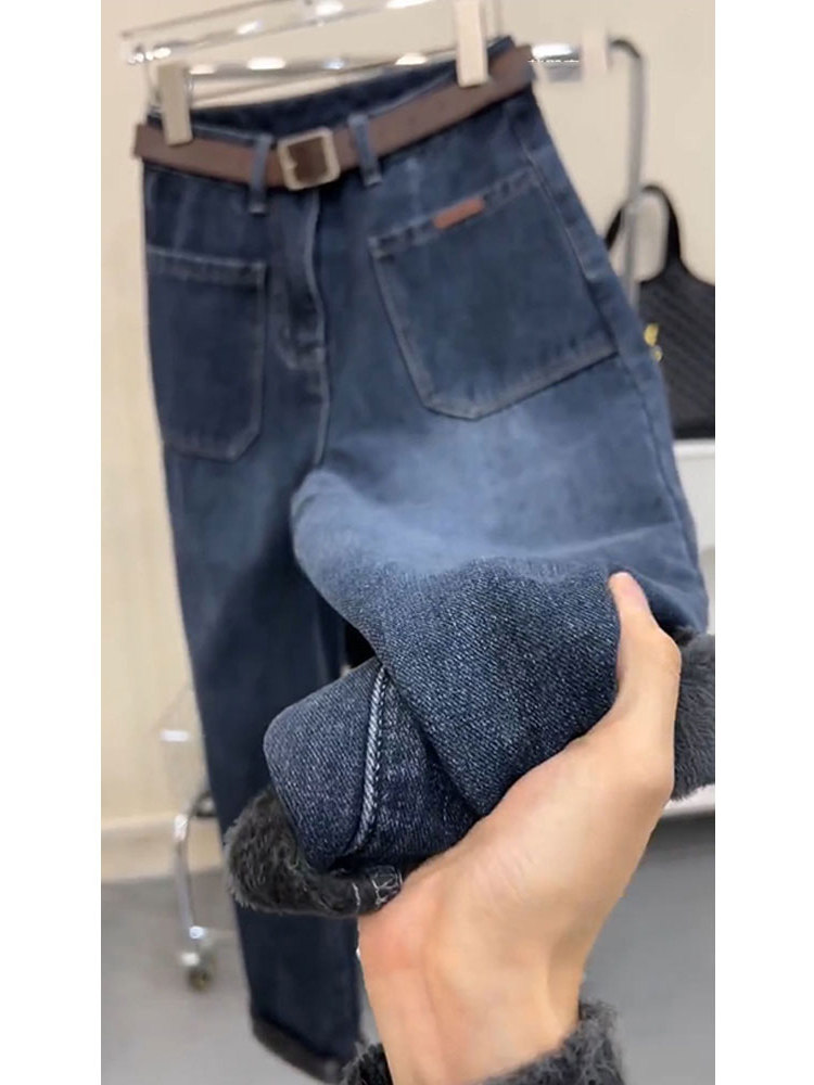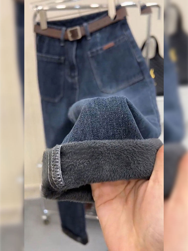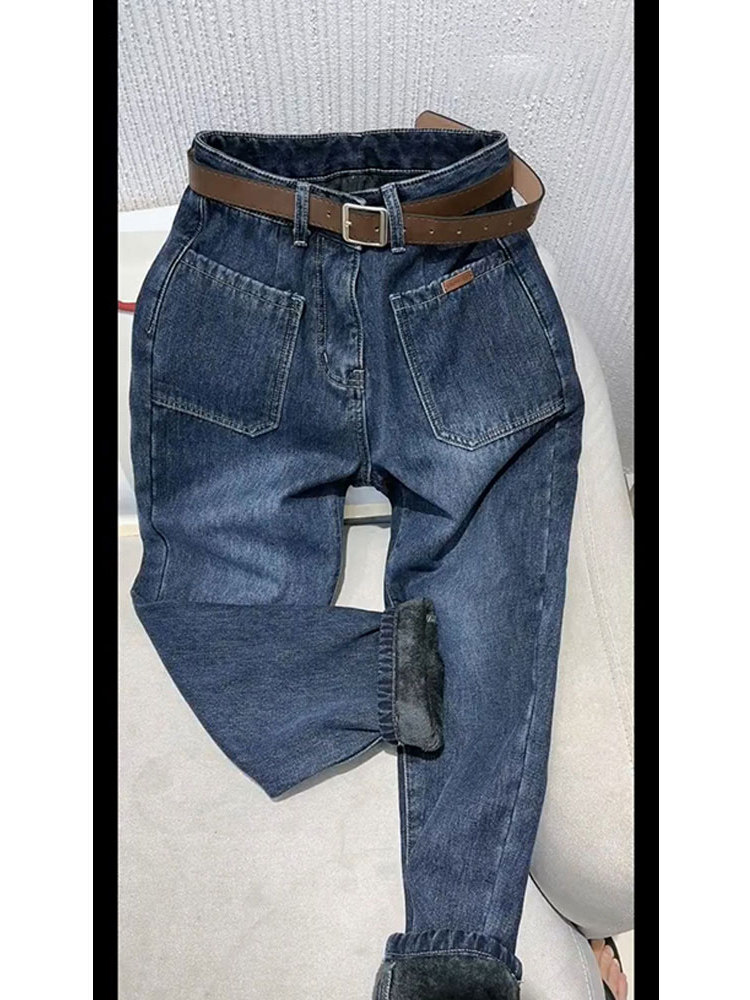 Сексуальные джинсы, утепленные синие зимние штаны, коллекция 2023, высокая талия