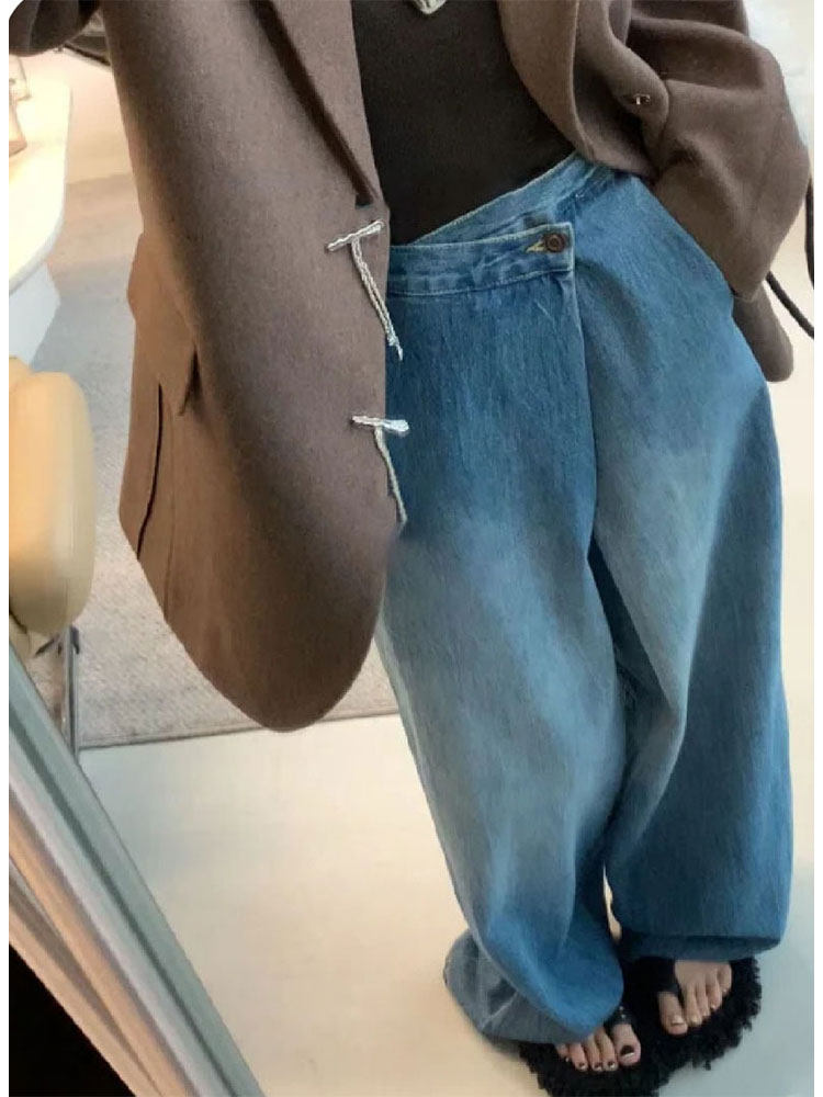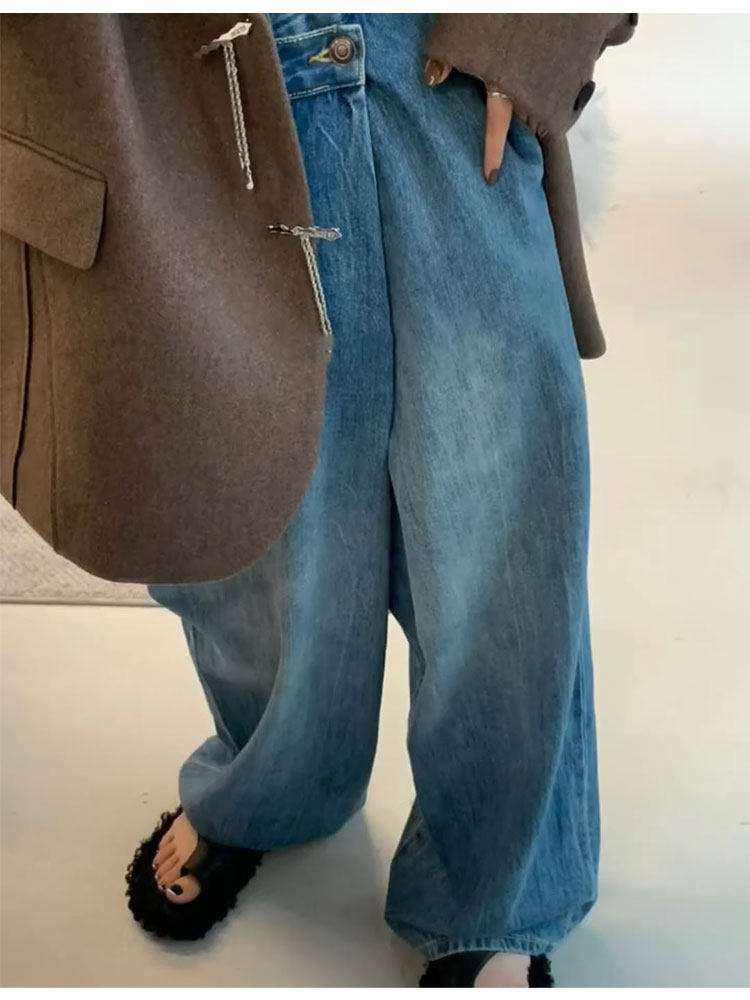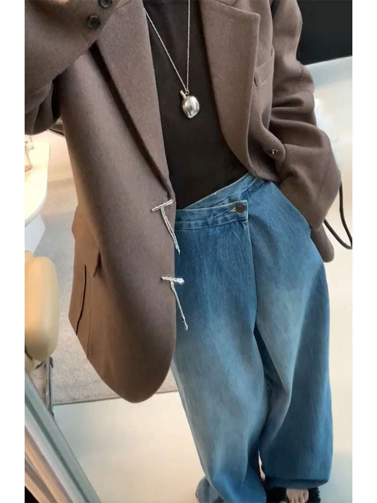 Небольшие дизайнерские штаны, джинсы, тренд сезона, изысканный стиль, свободный крой