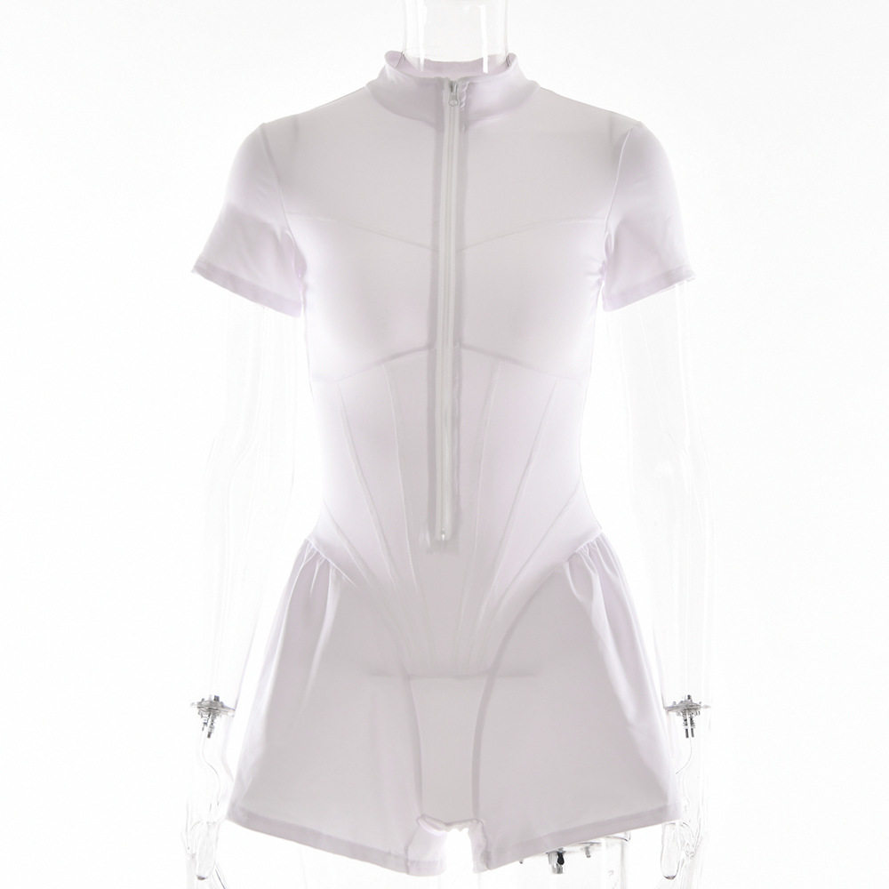 Сексуальные тела Con Rome Women Smepbuits с коротким рукавом Zipper Pla