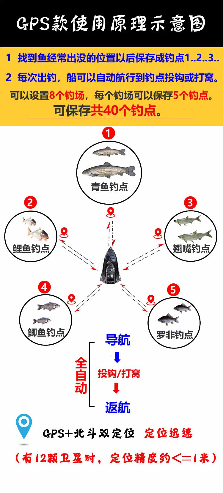 GPS -гнездовая лодка пульт дистанционного управления навигационной навигацией по доставке крючка перетаскивать сетевое рыбалка интеллектуальная точка позиционирования с высокой скоростью высокой скорости с высокой скоростью рыбы