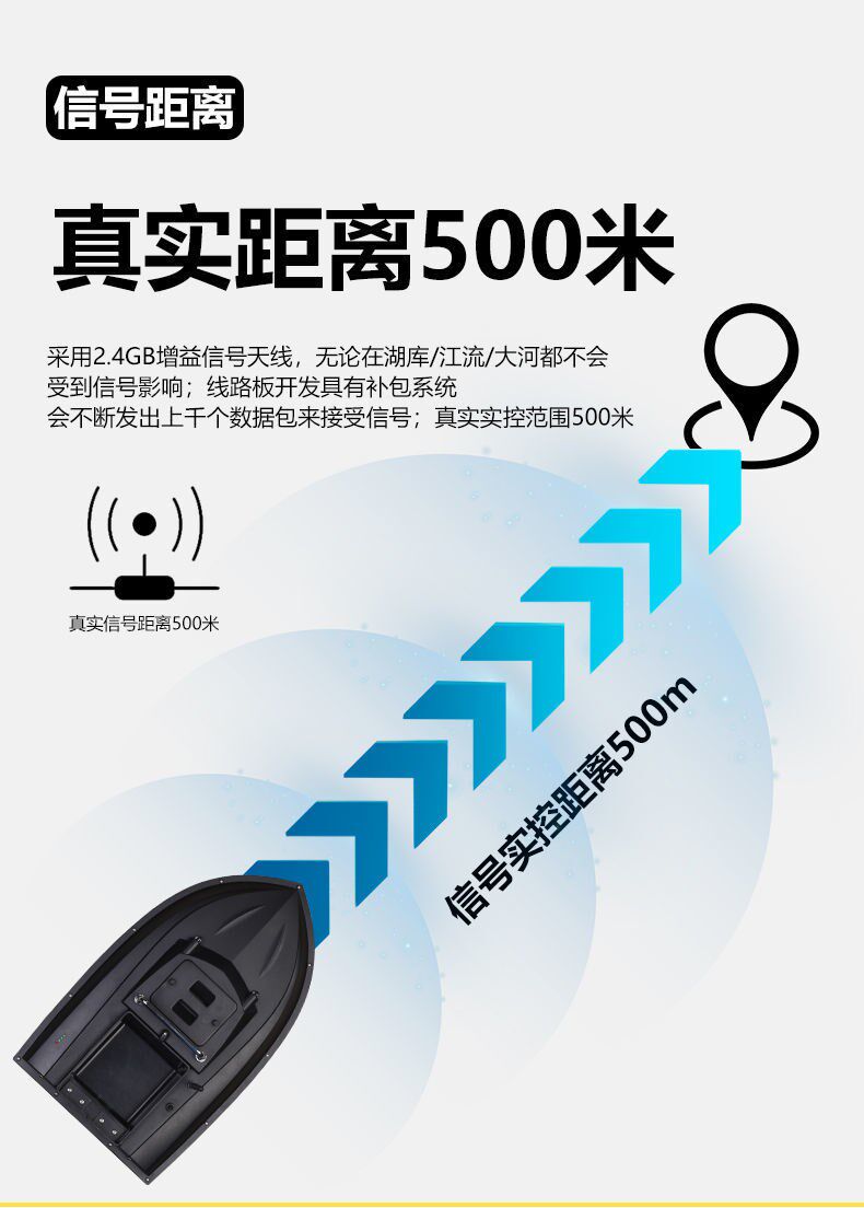 Катер для рыбалки, 500м, дистанционное управление, высокая мощность