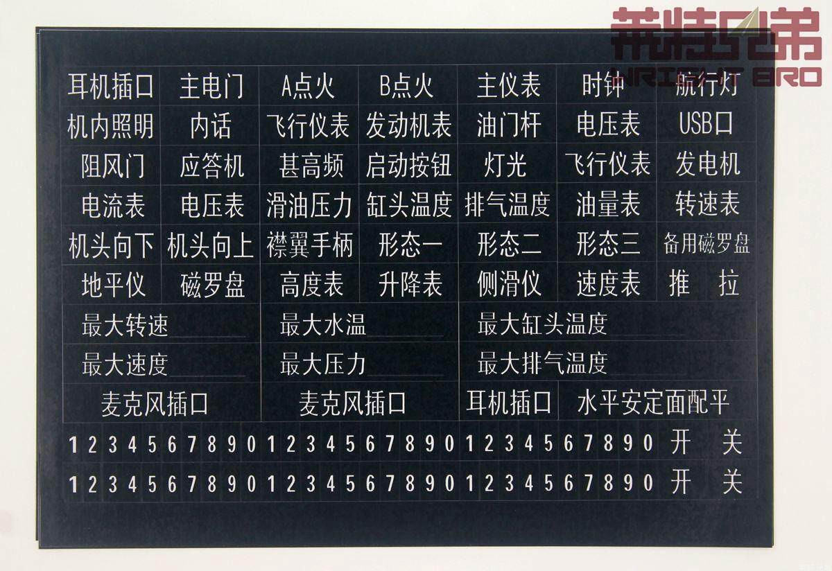 Компания прикреплена с резюме самолета&Ldquo; самолетная самолетная метка&Rdquo; как только ваша приборная плата будет собрана, вы можете использовать эту метку для определения своего кабинского инструмента и различного оборудования, а также содержания маркировки кабины в соответствии с правилами.
