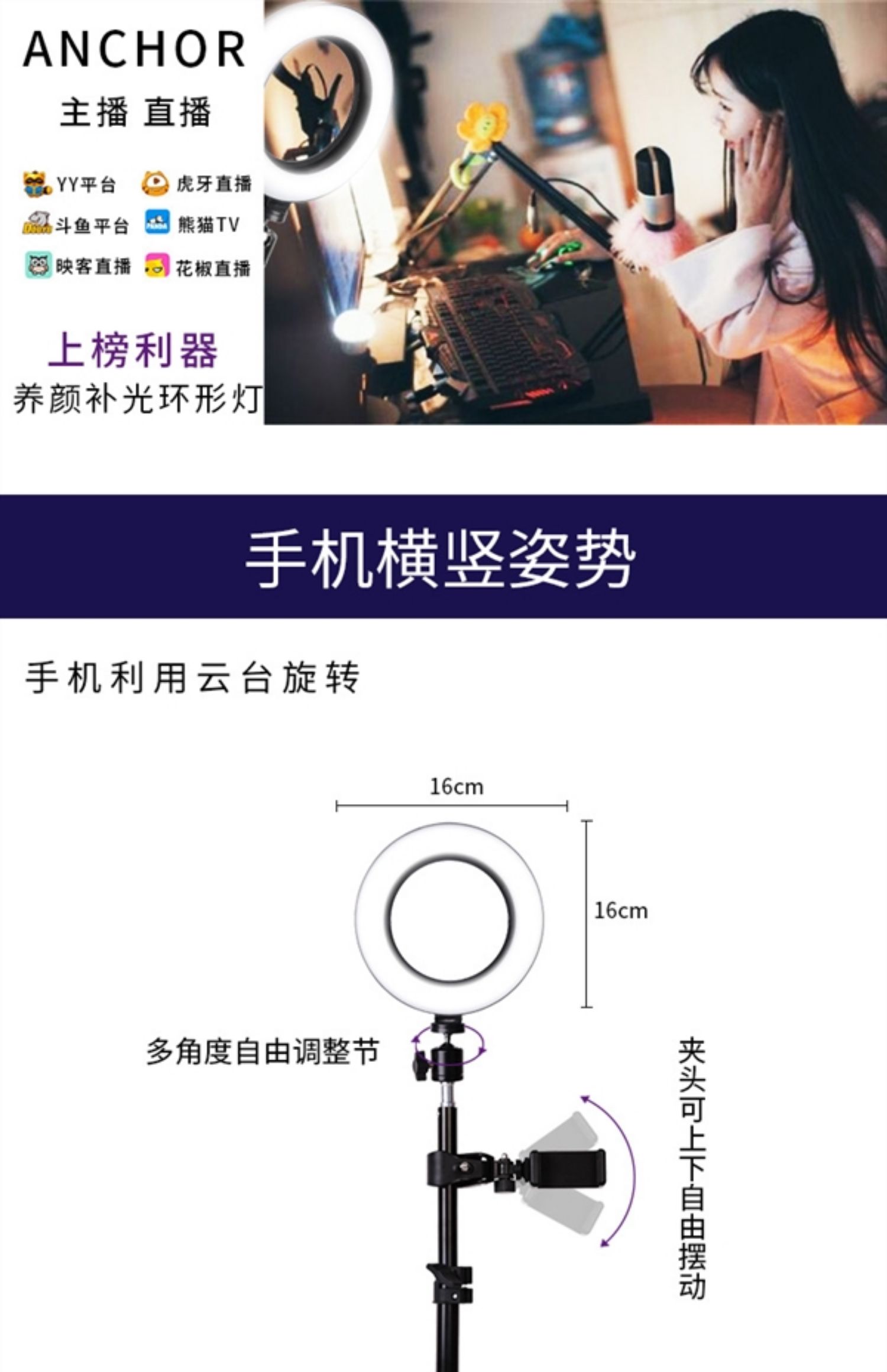 Мобильный телефон, заполняющий свет, трубка, легкая камера, штатив, регулируемое полочное освещение