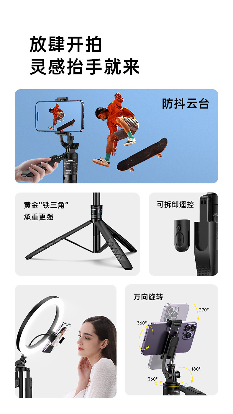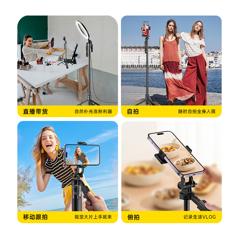 [W&P] 2025 новый штатив для селфи, 1,6 метра, многофункциональный Bluetooth с защитой от тряски, заполняющий свет для пола, кронштейн для прямой трансляции, поворот на 360 градусов, портативный фото-видео, путешествия, специальное предложение 2024 года