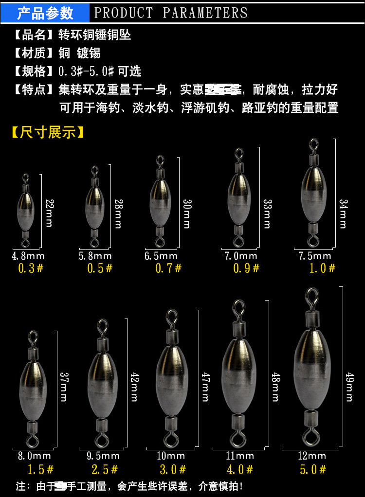 Медный ротор медных медных напитков не ржавеет восьми -симворовое кольцо нового типа быстро падающие рыболовные аксессуары для рыбалки