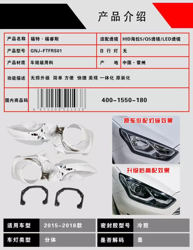 Легко изменять Fores Big Light Surgrade Kit 5/Q5 Automotive Double -Light Lens Furys Low -Oup High -Профильная внутренняя желчь