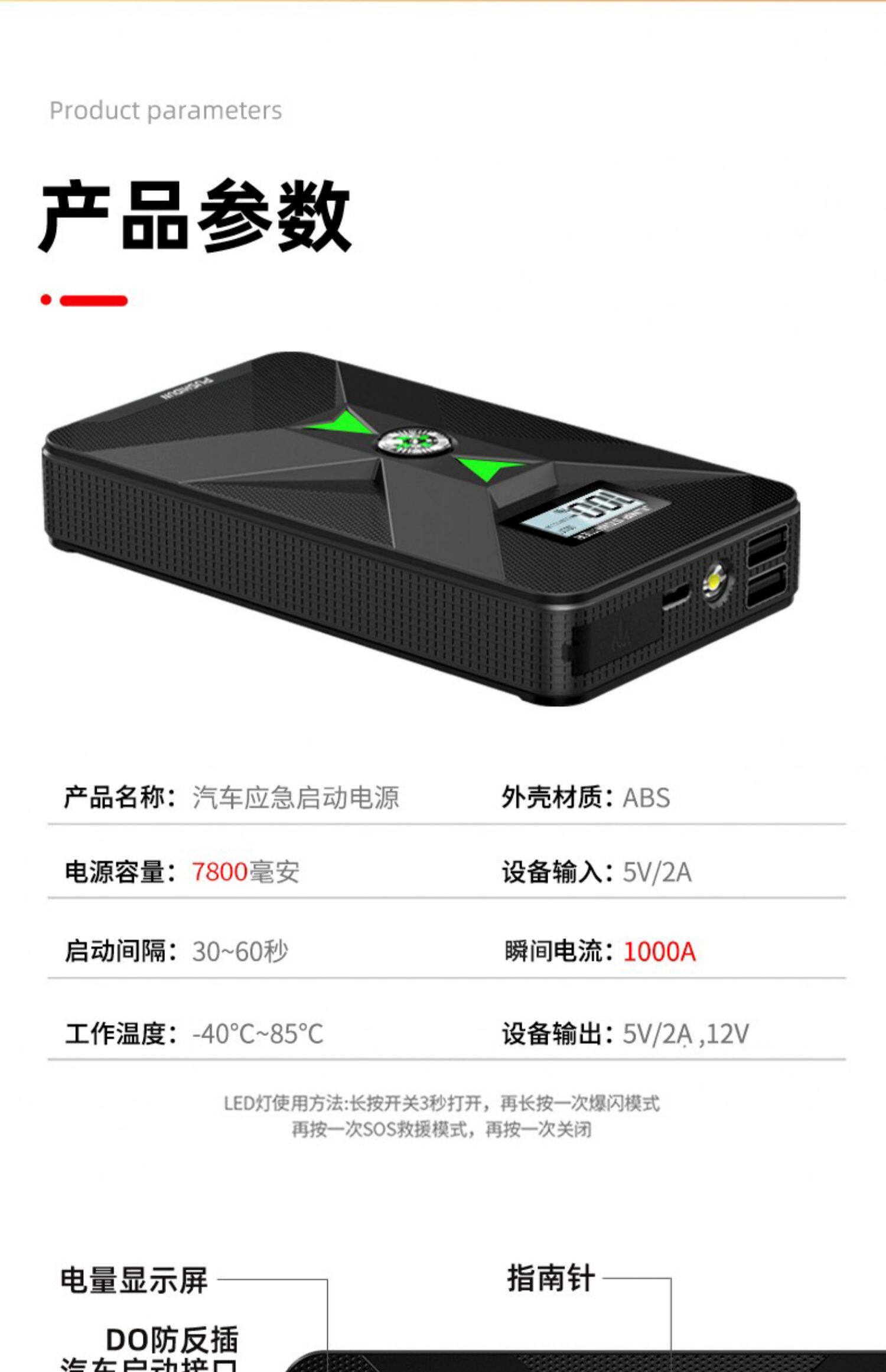 Автомобильный аварийный пусковой источник питания 12 В, мобильный блок питания, автомобильный аккумулятор большой емкости, спасательное зажигание и электрический артефакт