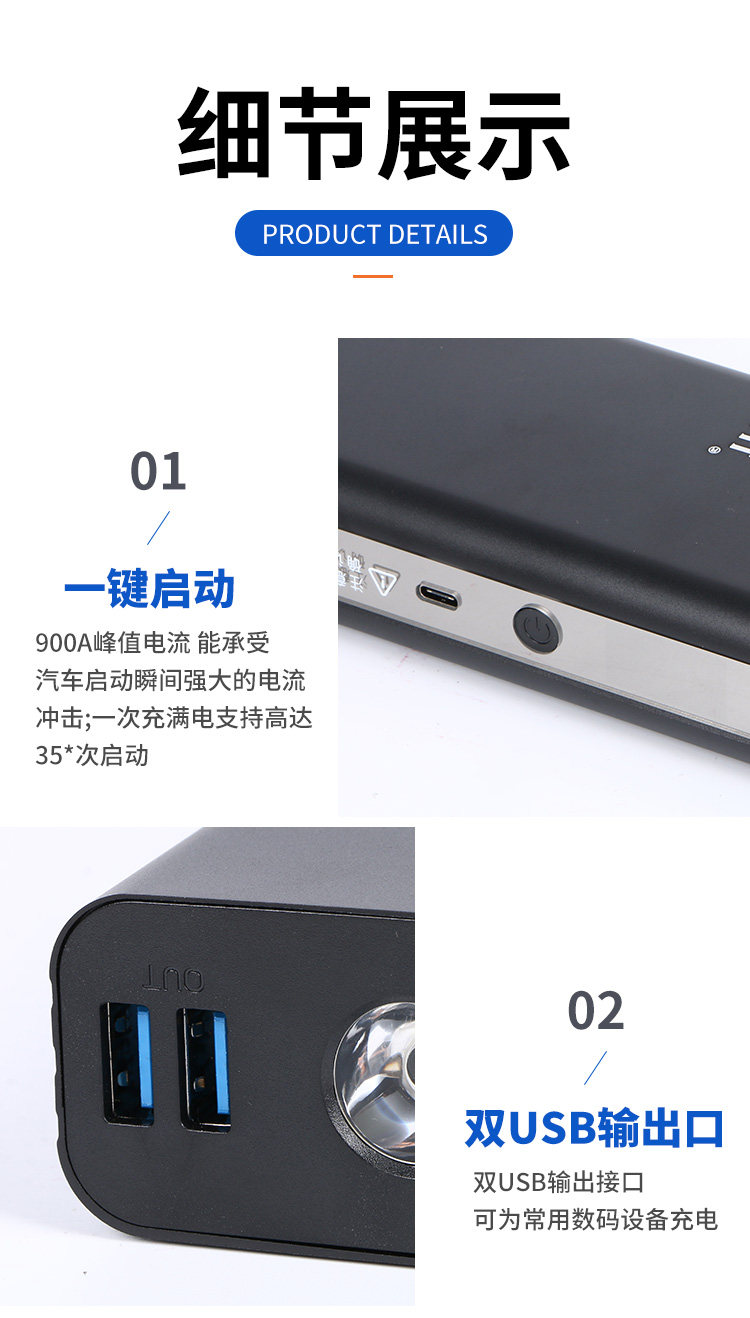 Автомобильный аварийный пусковой источник питания, резервное мобильное зарядное устройство большой емкости 12 В, мобильный автомобильный аккумулятор с электростартером