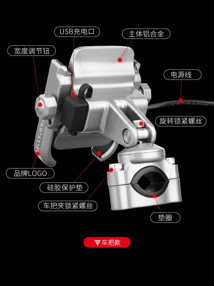 Электрическая металлическая трубка, горный велосипед для велоспорта, мобильный телефон, алюминиевый сплав, фиксаторы в комплекте