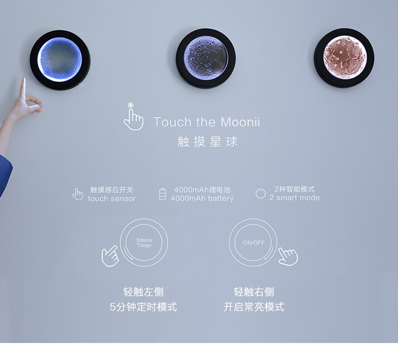 Moonii Беспроводная луна, сенсорный светильник, подарок на день рождения