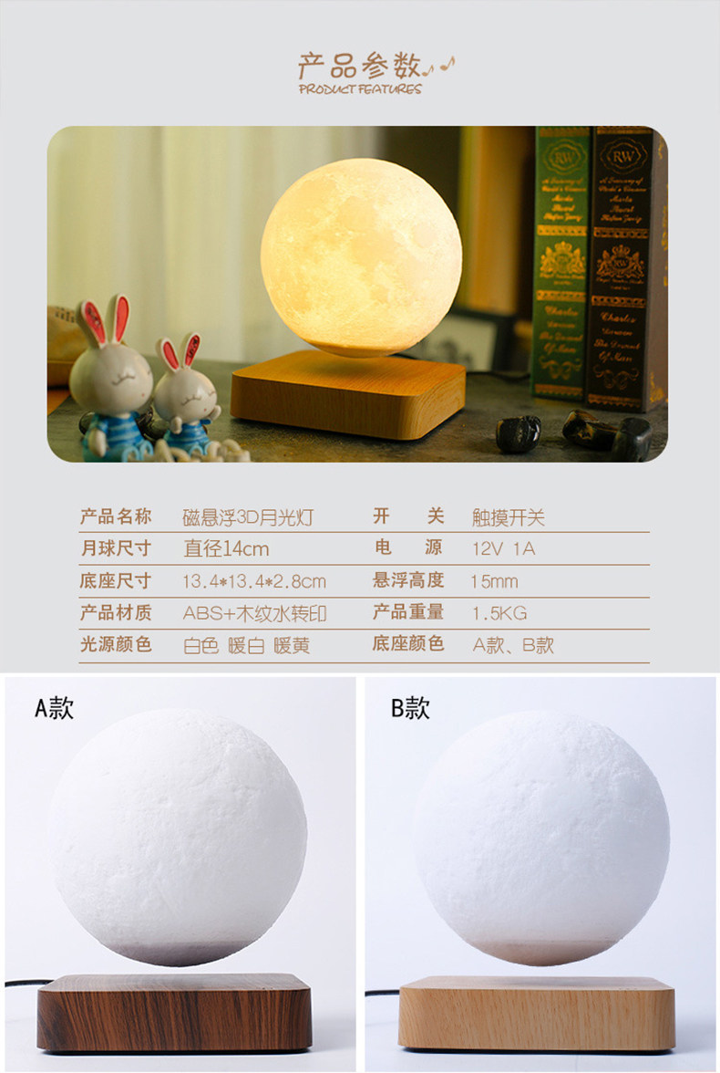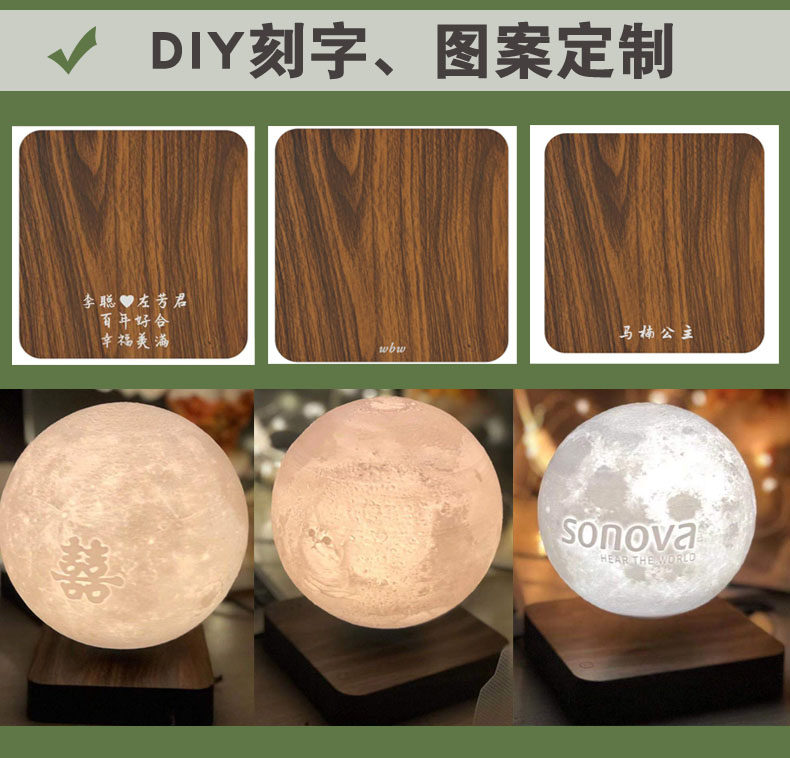 Магнитная левитация, луна, настольная лампа для кровати для спальни на день Святого Валентина, 3D, популярно в интернете, подарок на день рождения