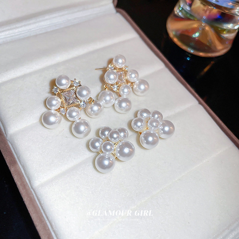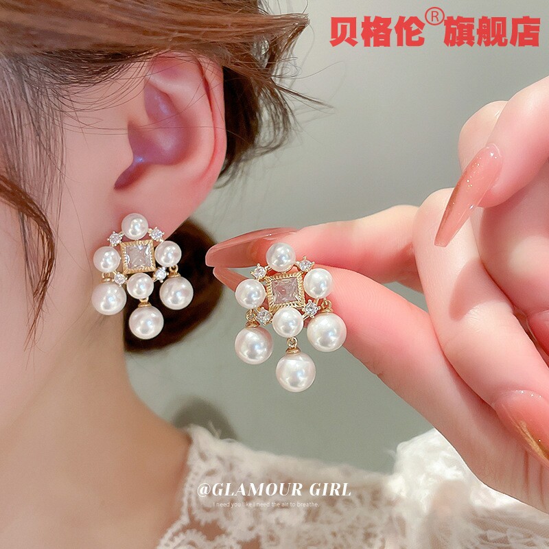 Геометричные элегантные серьги из жемчуга, французский стиль, изысканный стиль