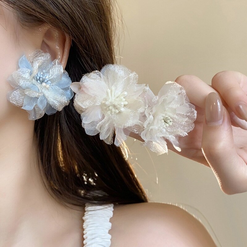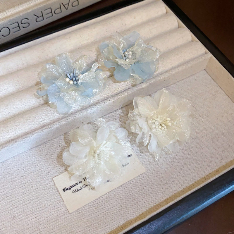 Белые шифоновые серьги, в цветочек, французский стиль, изысканный стиль