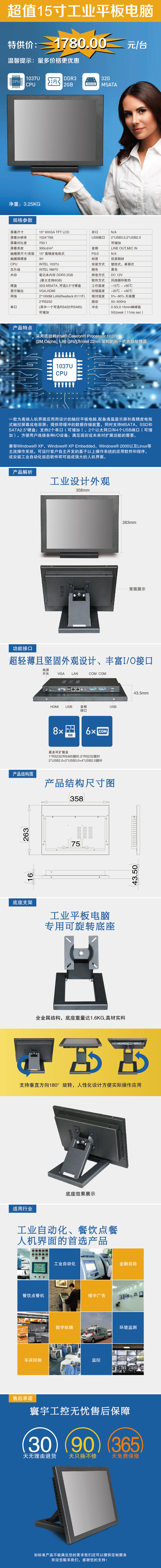 Промышленный планшетный сенсорный ноутбук, встроенный монитор, 15 дюймов, сенсорный экран