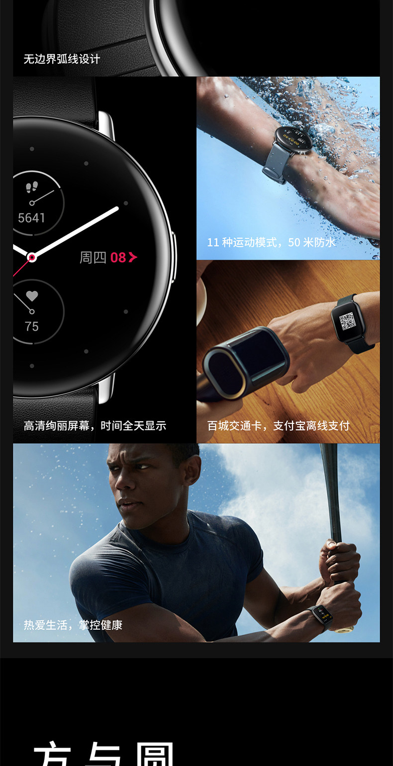 Zepp Модный браслет, универсальные водонепроницаемые часы для плавания, отслеживает уровень кислорода, отслеживает сердцебиение, NFC