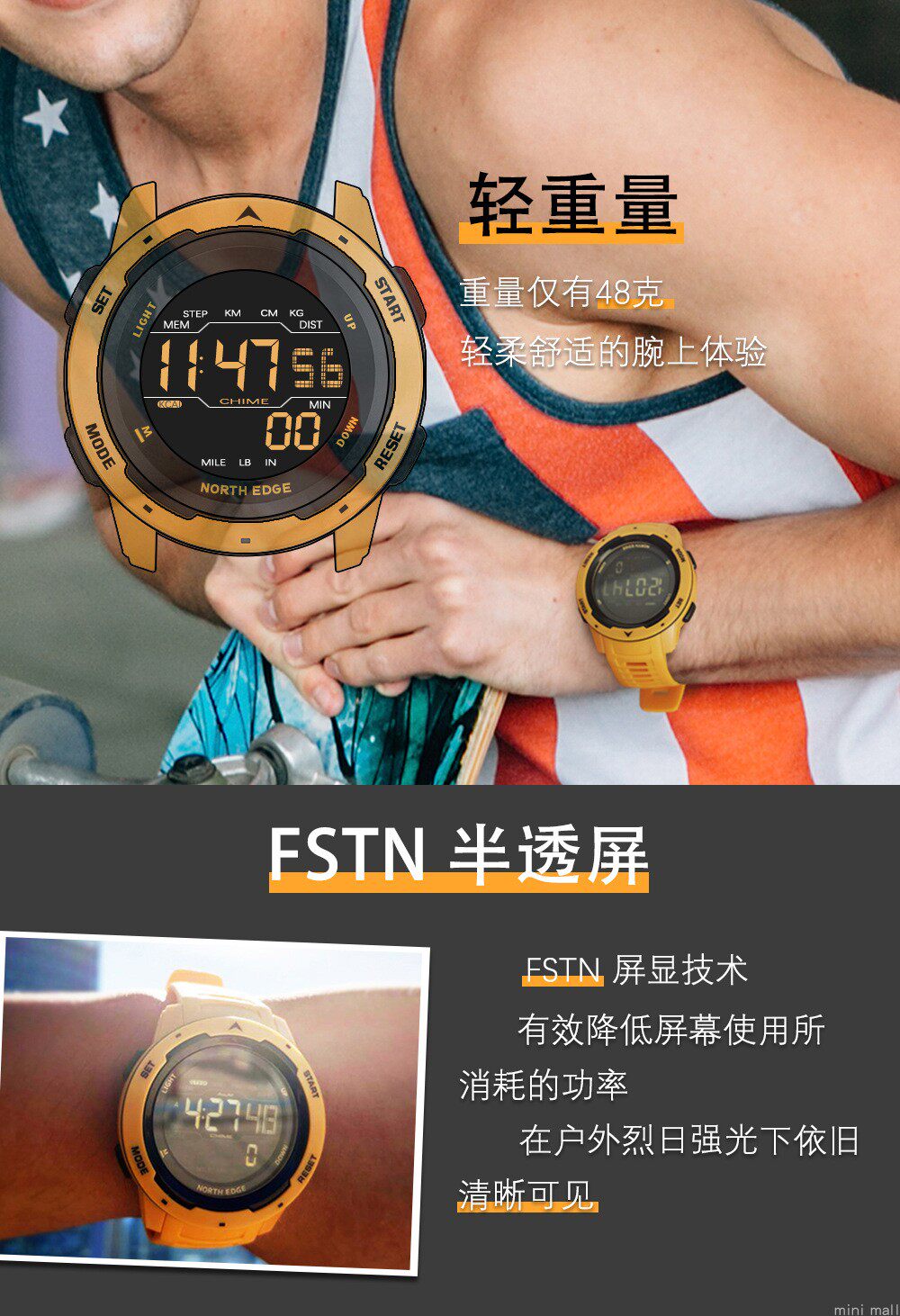 North Edge Mars Digital Watch Мужские спортивные часы двойные