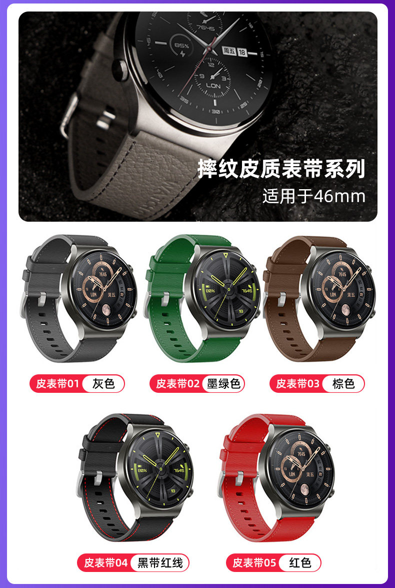 - Металлический ремешок для часов, 46mm, из натуральной кожи