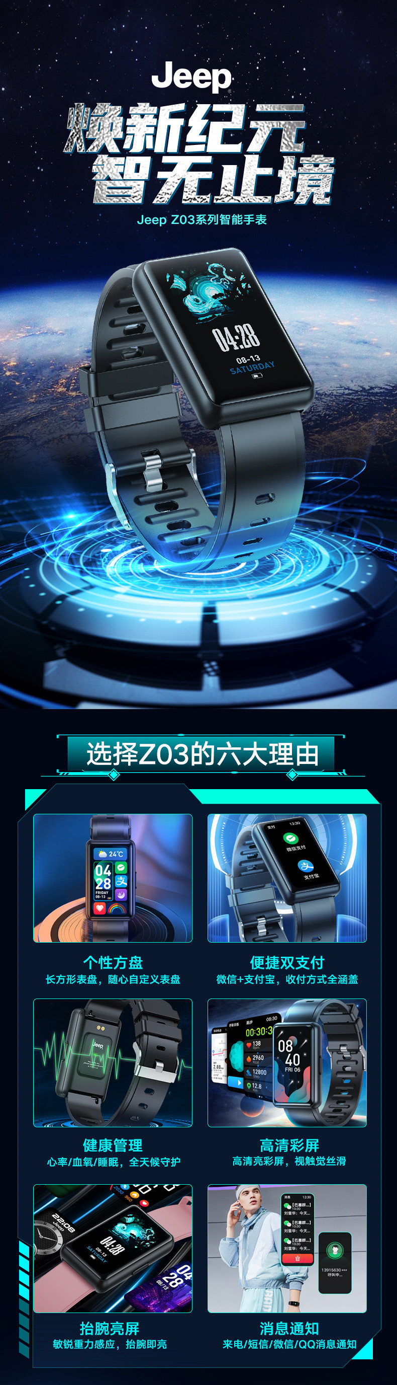 Jeep, apple, huawei, универсальный совместимый браслет подходит для мужчин и женщин, есть синхронизация с телефоном, bluetooth, Z03