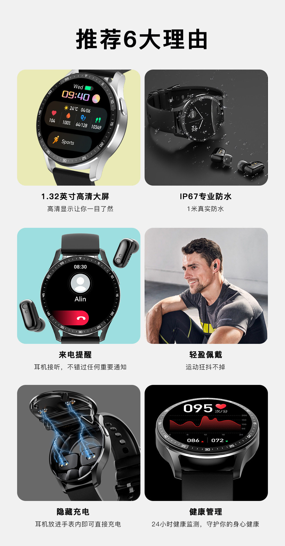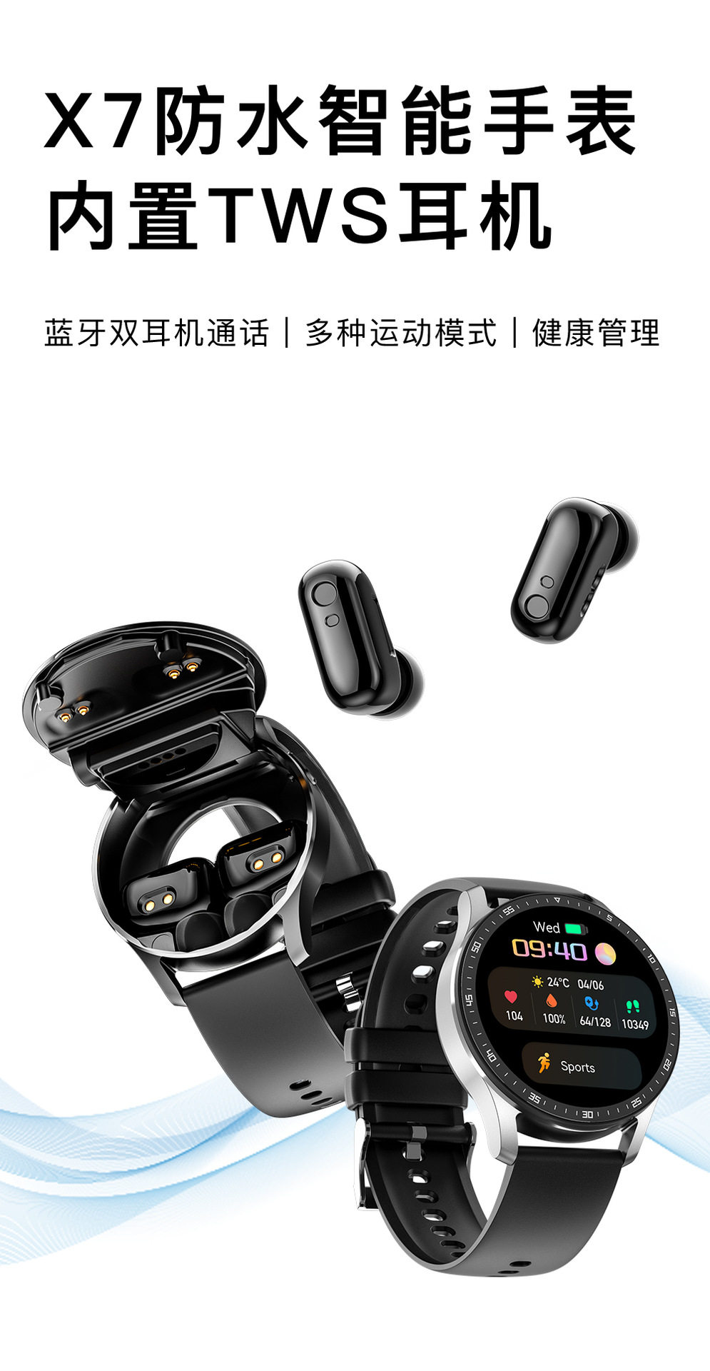 Huawei, универсальные ультратонкие водонепроницаемые наушники, совместимый браслет, bluetooth, 2 в 1, отслеживает сердцебиение