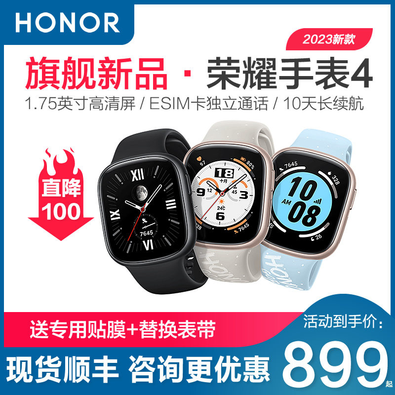 [Скидка 100 с купоном] Honor Watch 4 Smart Sports Bluetooth esim Независимый браслет вызова для мужчин и женщин Водонепроницаемый мониторинг сердечного ритма Срок службы батареи 10 дней Официальный подлинный Подходит для Android Apple Huawei
