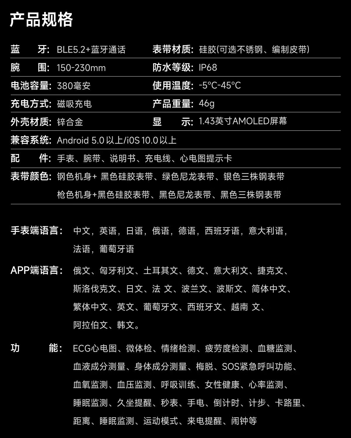 | Цвет: | Черный циферблат + три стальные полосы [вызов по Bluetooth + уровень сахара в крови, артериальное давление, мочевая кислота и липиды в крови], Черный циферблат + стальной сетчатый ремень [вызов по Bluetooth + уровень сахара в крови, артериальное давление, мочевая кислота и липиды в крови], Черный циферблат + черный коричневый пояс [вызов по Bluetooth + уровень сахара в крови, артериальное давление, мочевая кислота и липиды в крови], Черный циферблат + черный пояс [вызов по Bluetooth + уровень сахара в крови, артериальное давление, мочевая кислота и липиды в крови], Черный циферблат + силиконовый ремешок [вызов по Bluetooth + уровень сахара в крови, артериальное давление, мочевая кислота и липиды в крови], Серебряный циферблат + три стальных ремешка [вызов по Bluetooth + уровень сахара в крови, артериальное давление, мочевая кислота и липиды в крови], Серебряный циферблат + стальной сетчатый ремень [вызов по Bluetooth + уровень сахара в крови, артериальное давление, мочевая кислота и липиды в крови], Серебряный циферблат + силиконовый ремешок [вызов по Bluetooth + уровень сахара в крови, артериальное давление, мочевая кислота и липиды в крови], Серебряный циферблат + зеленый нейлоновый ремешок [вызов по Bluetooth + уровень сахара в крови, артериальное давление, мочевая кислота и липиды в крови] |