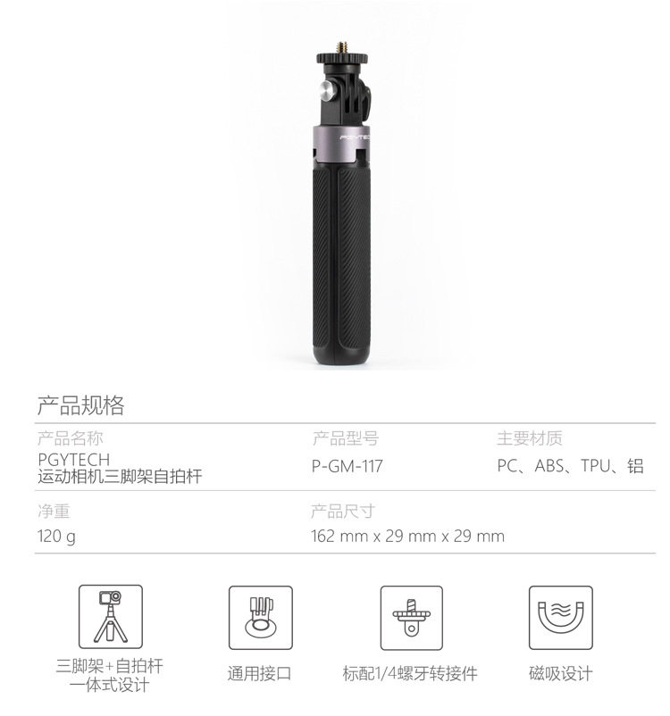Pgytech Tri -Tripod Extension Selfie Rod подходит для DJI DJI Action 3 Accessories Camera Camera