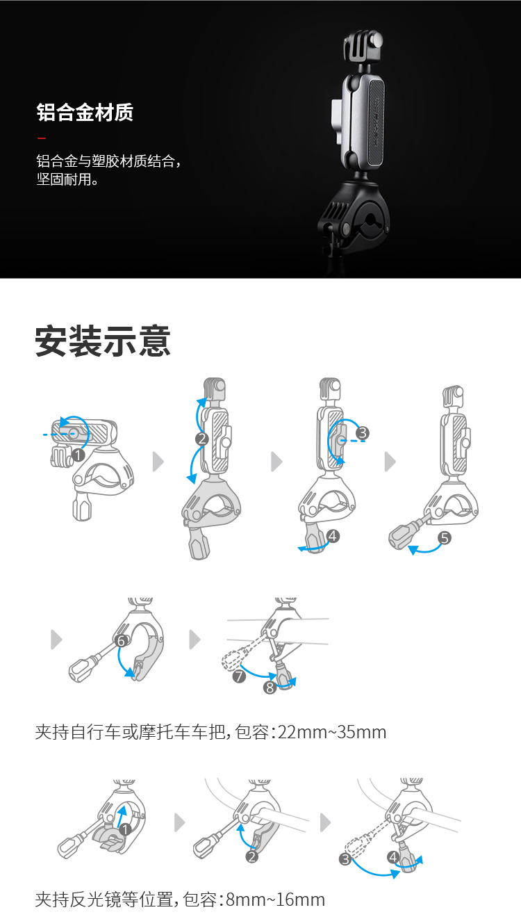 DJI, спортивная металлическая камера, трубка для велоспорта, велосипед, горный руль, видеокамера с аксессуарами, 10/