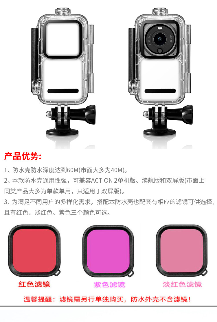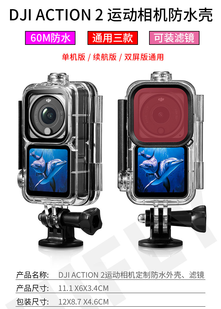 Применимо к DJI DJI Action2 Sports Camera Camera Double -Escreen Edition Edition Водонепроницаемые аксессуары для защиты бумаги для оболочки.
