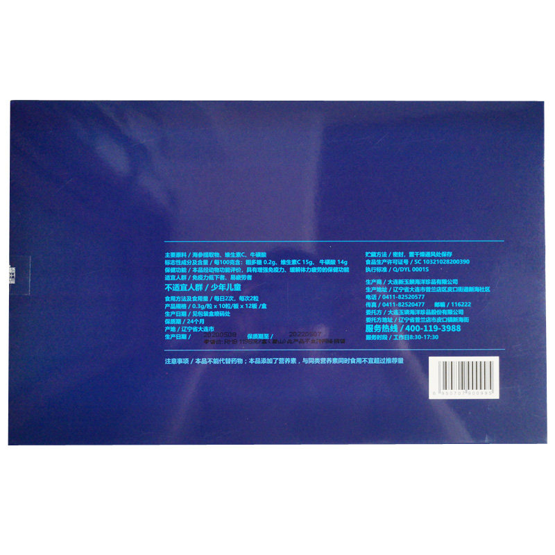 Высоко -стандартное предприятие:Через ISO22000 в систему с высоким управлением компания может проследить источник роста каждого морского огурца, контролировать его разведение, рассаду, рост, захват, производство, продажи и другие связи на протяжении всего процесса, снижает вероятность дефектных продуктов, обеспечивает Потребители едят, чтобы съесть каждый&Ldquo; Будьте уверены, Liaoshen” каждая капсула“”.