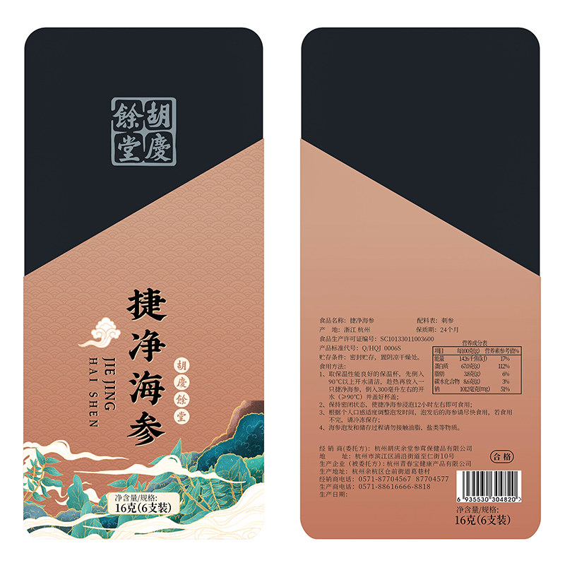 胡庆余堂 Морское огурец Цзяджинг 16G 6 заполненные морские огурцы сухой подарка в подарочную коробку Группа Подарочная коробка
