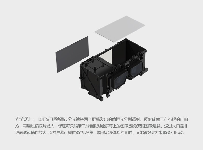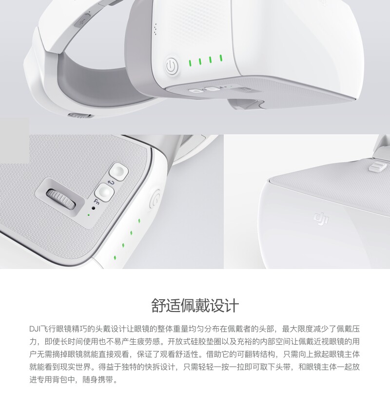 [4] Летающие очки DJI расположены перед фюзеляжем, а два других помещаются внутри задней повязки, обеспечивая 360°Всципляционный диапазон приема.В то же время, пожалуйста, следуйте