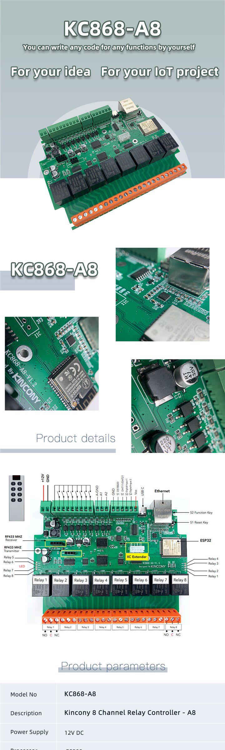 KC868-A8 Ethernet RS485 Relay ESP32 Development Bifi S