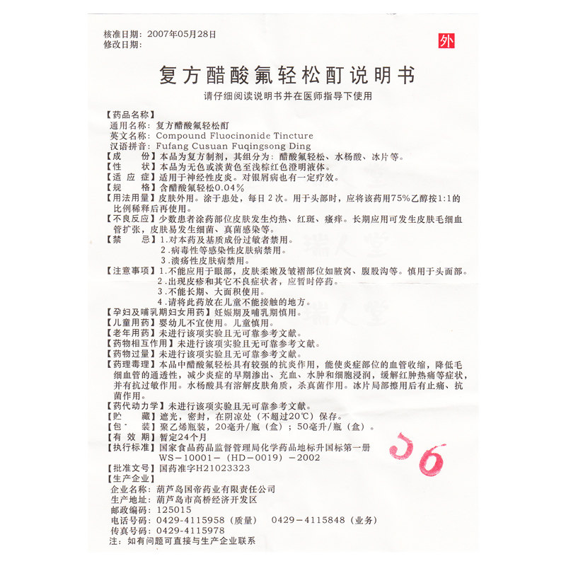 国缔 Соединение флуоридицина уксусной кислоты L 20 мл*1 бутылка/ящик антибактериальной антибактериальной стерилизации анти -аллергической анальгетики и нейродерматита Псориаз Псориаз Псориаз подлинный