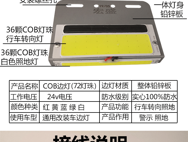 Большой грузовик боковой свет 24 В ультра -тонкий легкий светлый водонепроницаемый дисплей широкий светодиодный полузащитный полузащитник