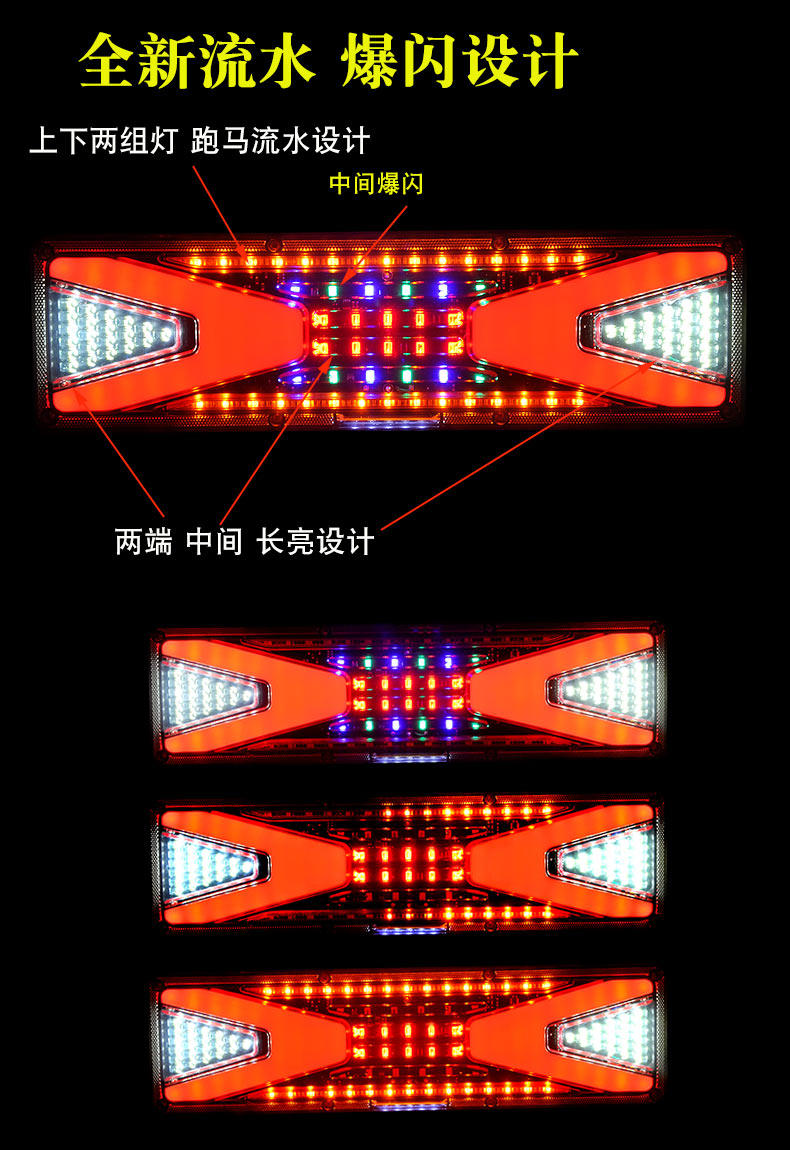 Большой грузовик светодиодной задней лампы Сборка сборочной обработки поворачивается к красочным задним фонарям, полузвездам флэш -светильника.