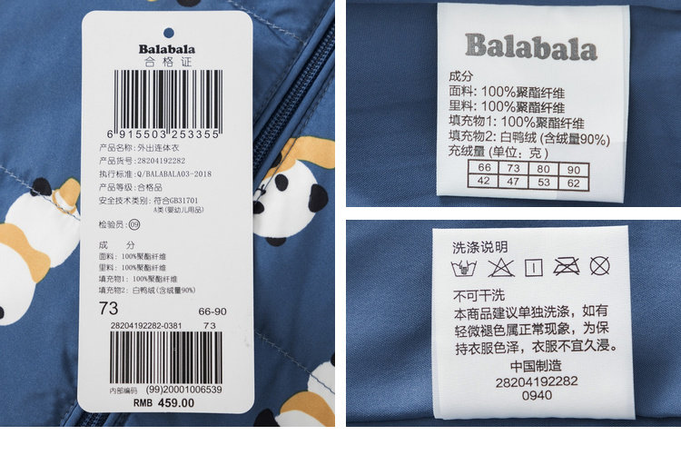 巴拉巴拉 Детский комбинезон с пухом, утепленный пуховик для выхода на улицу, в западном стиле