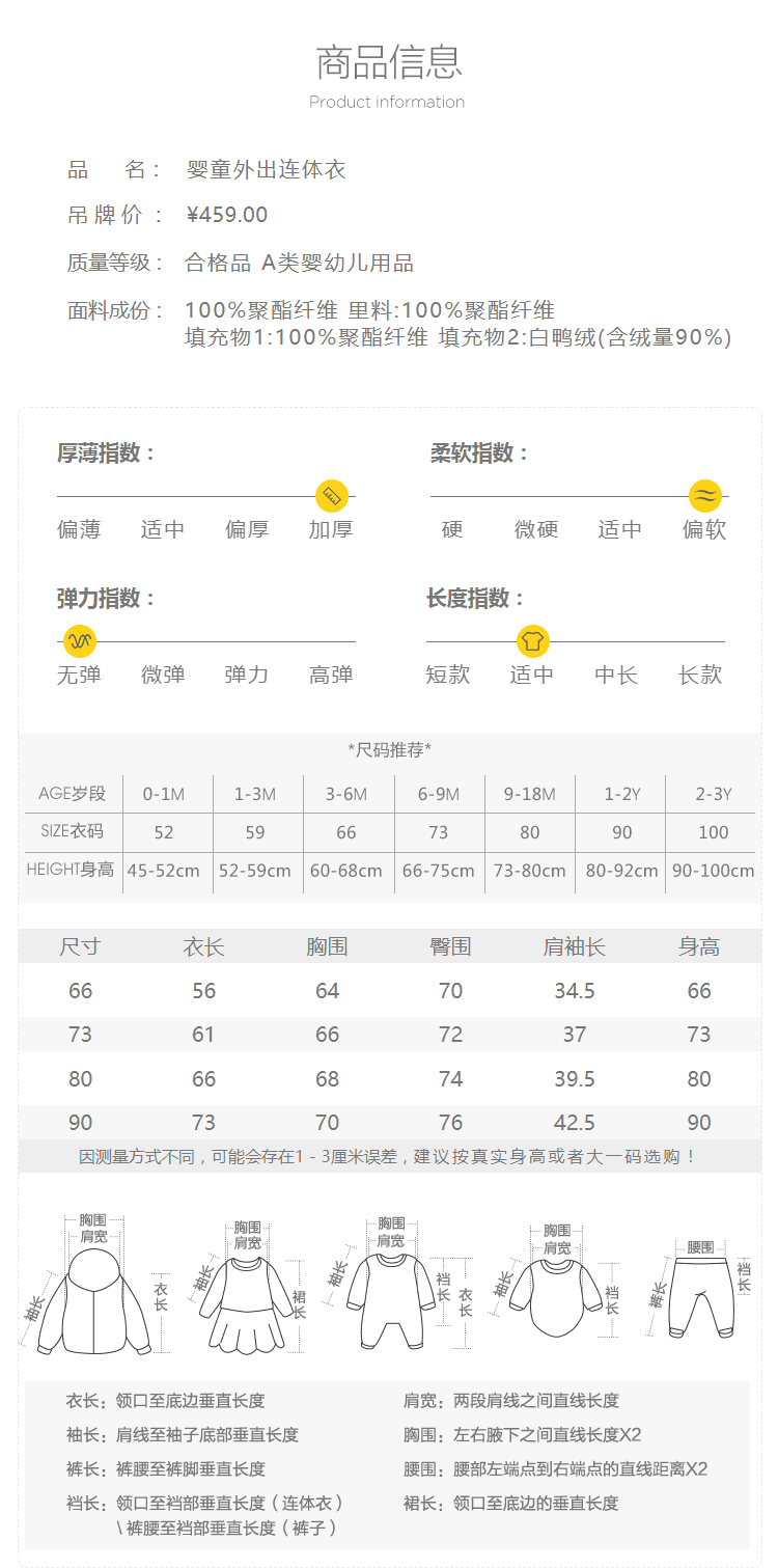 巴拉巴拉 Детский комбинезон с пухом, утепленный пуховик для выхода на улицу для новорожденных