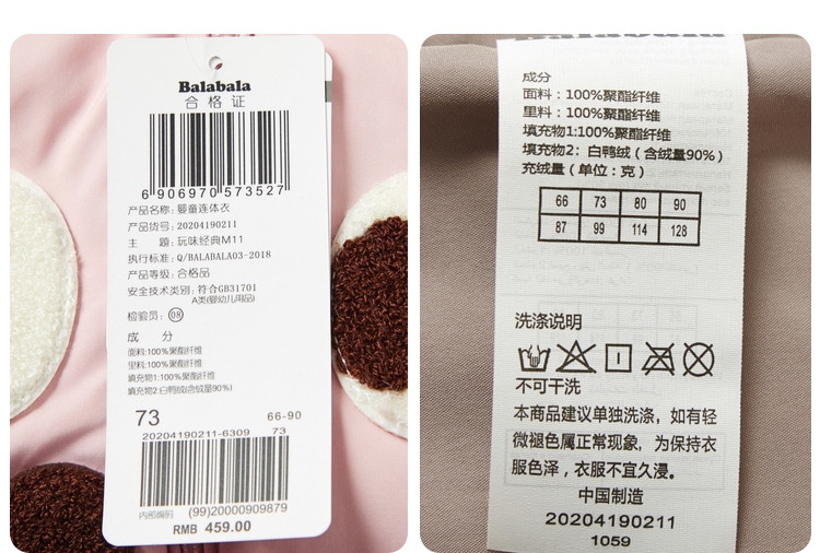 巴拉巴拉 Детский комбинезон с пухом, мультяшный пуховик для выхода на улицу, увеличенная толщина
